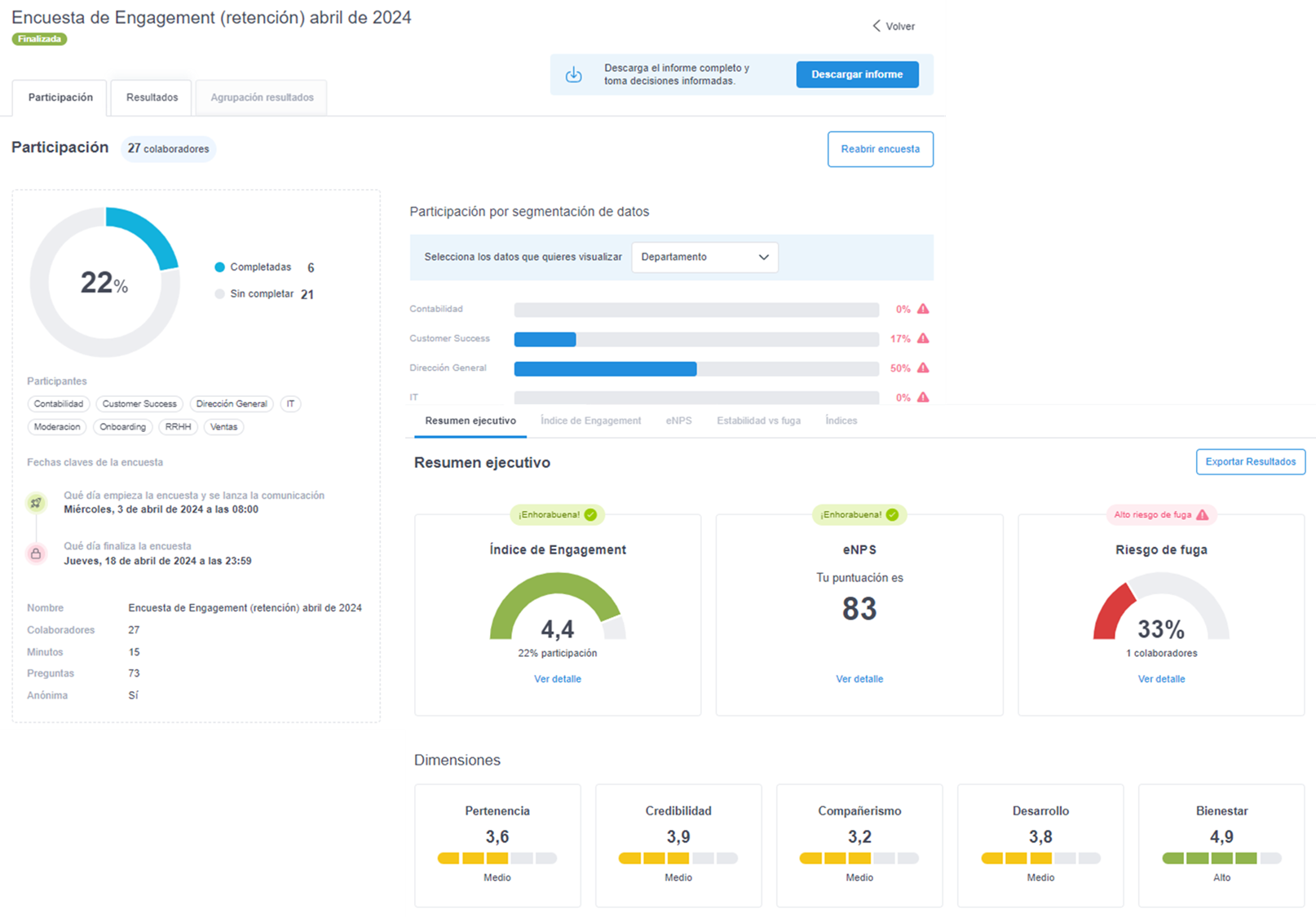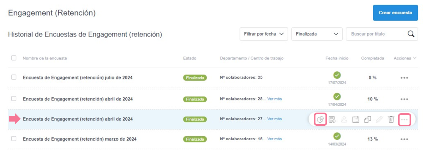 A continuación detallamos como acceder a los resultados de una encuesta de Engagement finalizada.
