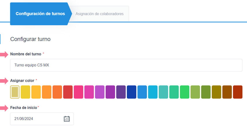 2. El primer paso es la "Configuración de turnos". Empieza por: