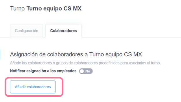 1. El siguiente paso es asignar los colaboradores que van a trabajar en esos turnos. En la pestaña de colaboradores, haz clic en el botón "Añadir colaboradores".
