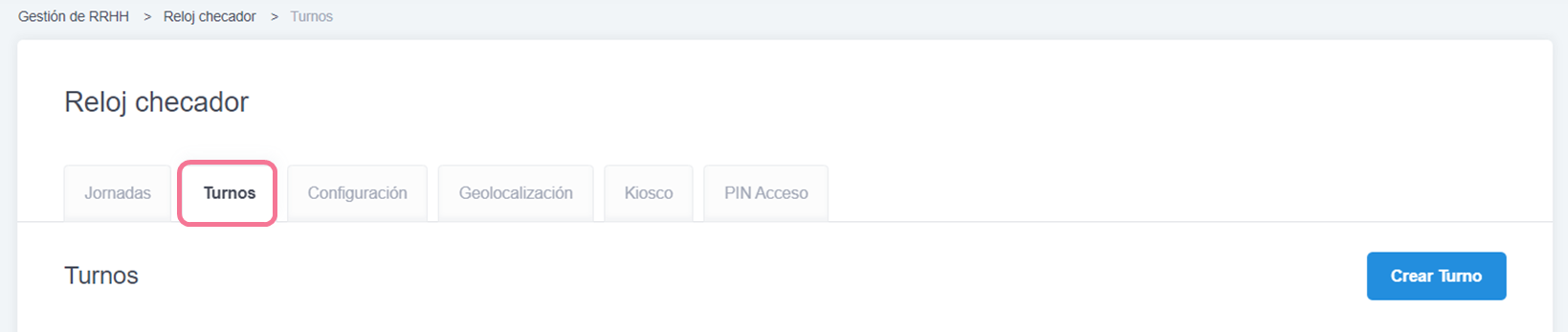 1. Una vez en la pestaña de "Turnos", haz clic en el botón "Crear turno".