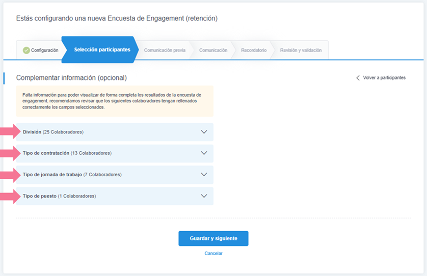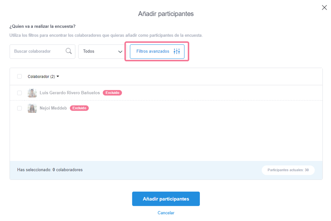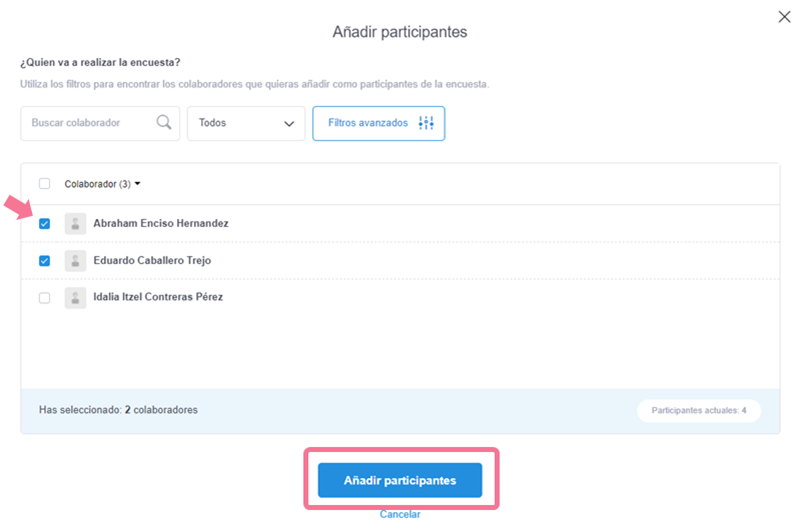 8. Selecciona los colaboradores que quieres incluir como participantes en la encuesta.