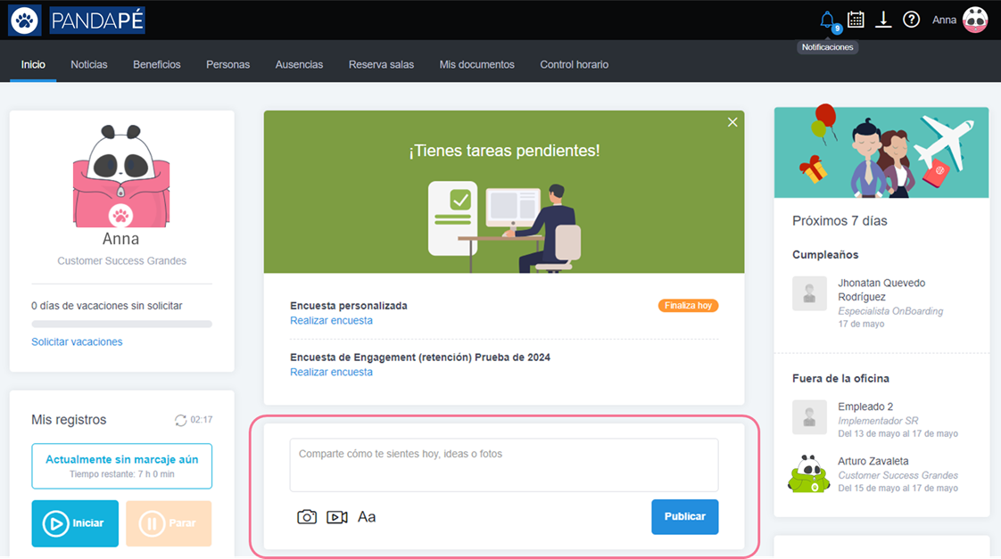 El módulo de comunicación permite subir publicaciones en la plataforma corporativa. Esta te permitirá interactuar y compartir contenido de calidad con los colaboradores de tu empresa.