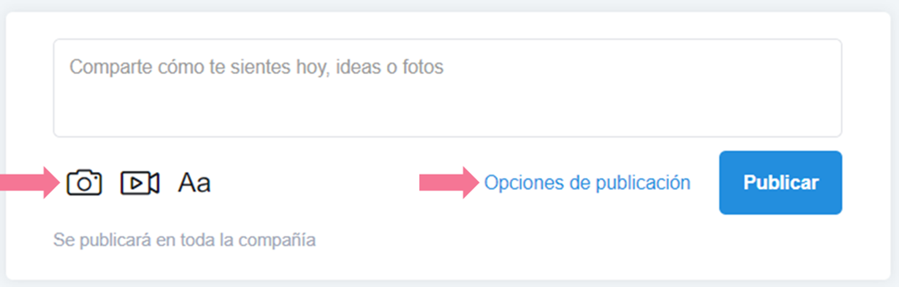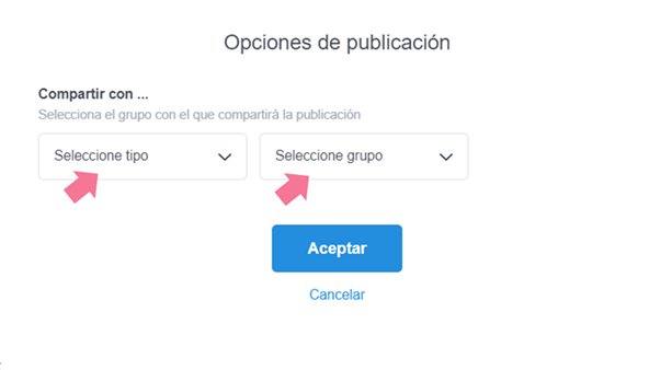 3. En "Opciones de publicación" podrás escoger con quién lo compartes, Oficina, departamento o grupo.
