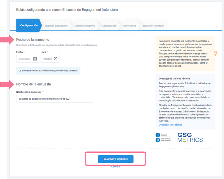 A continuación te detallamos como programar y configurar una encuesta de Engagement.