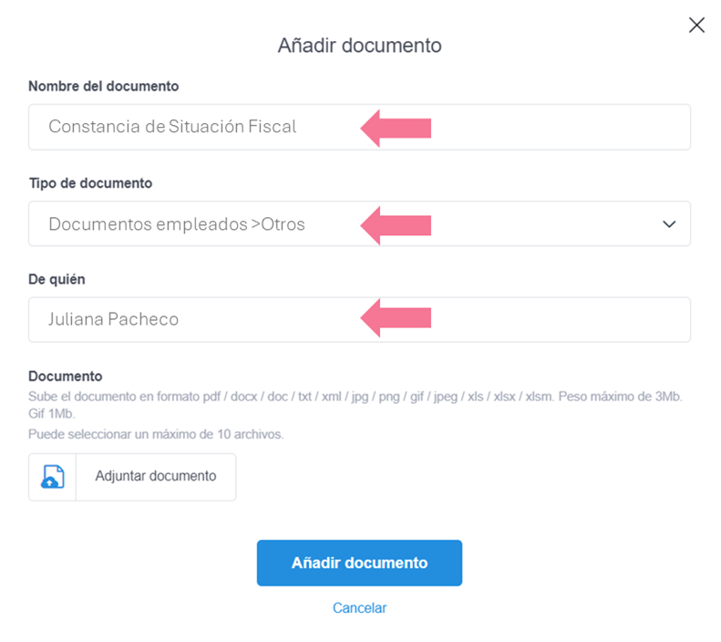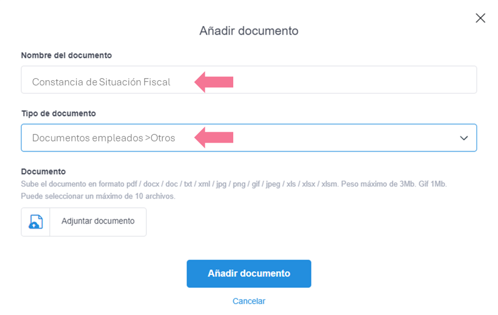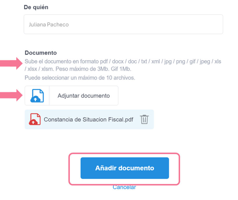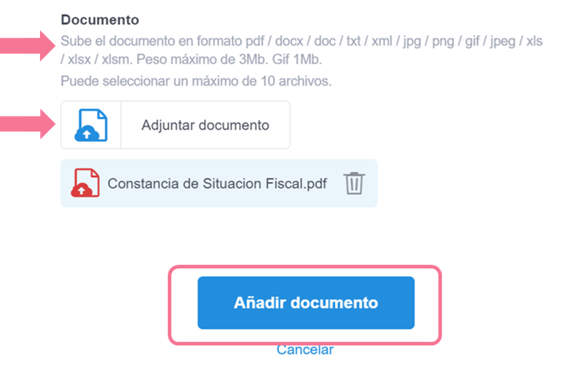 - Una vez cargados los documentos haz clic en "Añadir documento"