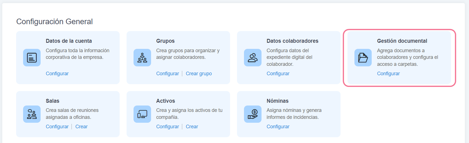 1. Accede a " Gestión de documentos" a través de: Gestión de RRHH> Gestión documental>Configurar>Gestión de documentos