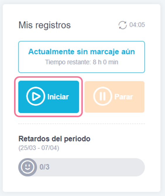 2. Haz clic en el botón Iniciar para que se registre tu inicio de jornada.