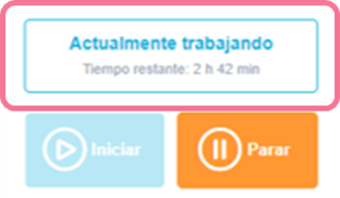 2. Según el tipo de pausa escogido, tu estado cambiará a, "Actualmente en pausa" o "Actualmente en pausa para comer" o "Actualmente jornada finalizada".