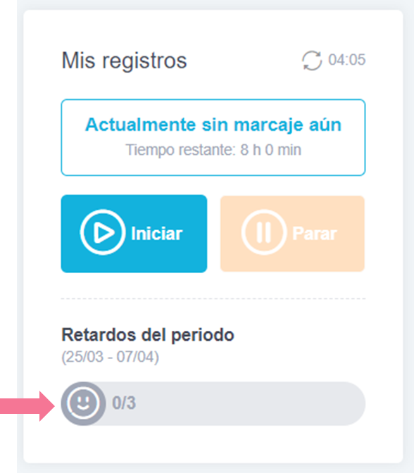 5. Los retardos se contabilizarán en la parte inferior de área de Mis registros.