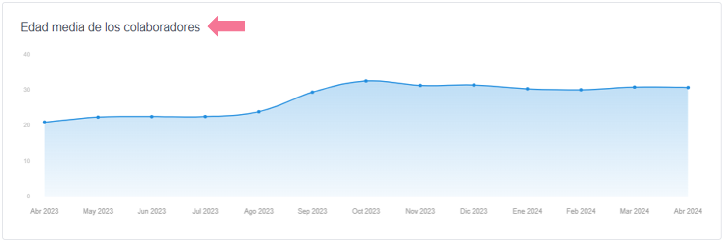 - Edad media de los empleados: Muestra la edad media los colaboradores durante el último año.