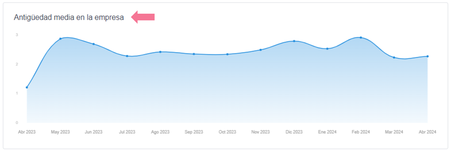 - Antigüedad media en la empresa: Muestra la antigüedad media de los colaboradores durante el último año.
