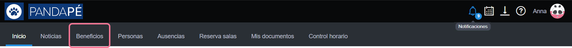 1. Cuando hayas iniciado sesión, ve a "Beneficios" en la barra del menú principal.